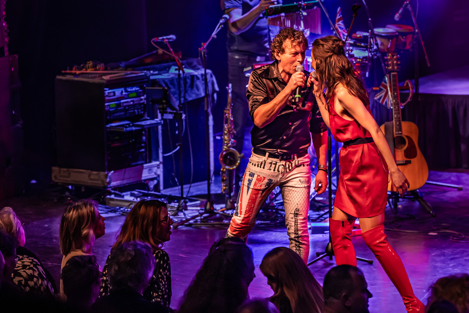 Tijdens de Londense editie, die centraal staat in deze voorstelling, betraden talloze grote Britse artiesten het podium. Namen als Queen, Phil Collins, Status Quo, The Who, Eric Clapton, The Police, David Bowie, Simple Minds, Madness, Tom Jones, Led Zeppelin en Mick Jagger zorgden voor legendarische en onvergetelijke optredens.